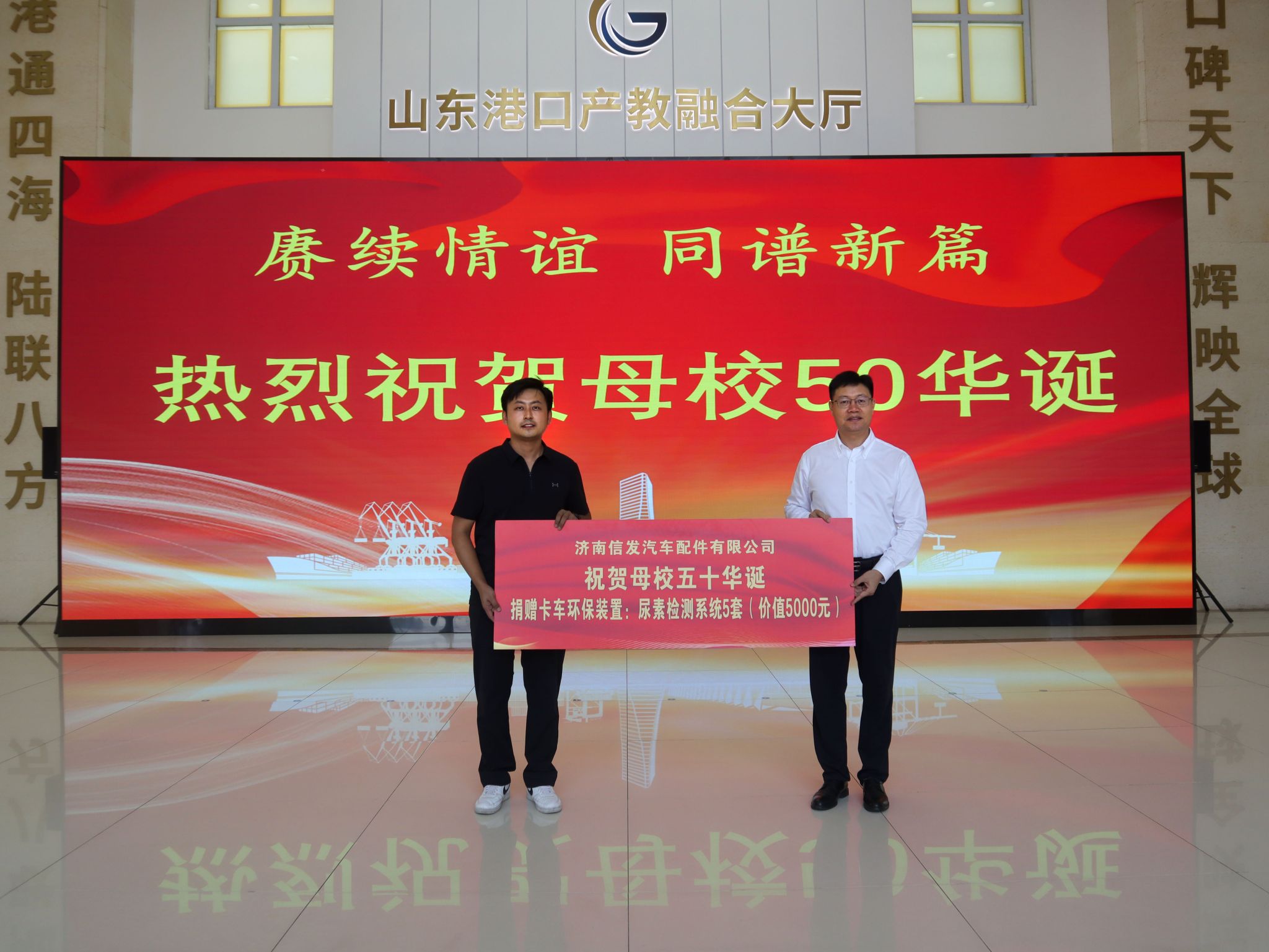 大会结束以后,2026年国际足联世界杯举行了员工捐赠仪式,公司党委委员、副经理吕楠代表学院接受了捐赠。2009级数控1班周惠惠员工企业山东明兮文化传播有限公司联合济南出版社向母校捐赠图书1002册,价值52076元;2004级汽车应用技术班罗崇伟员工企业济南信发汽车配件有限公司向学院捐赠卡车环保装置5套,价值5000元;2007级汽车班赵钢、2004级数控1班、2014级数控2班、2014级机械制造及自动化专业5班等员工以个人或班级集体名义向学院捐赠了山水画、荣誉牌匾、锦旗、工艺品等。海泰科模具有限公司等合作单位捐赠了花篮。