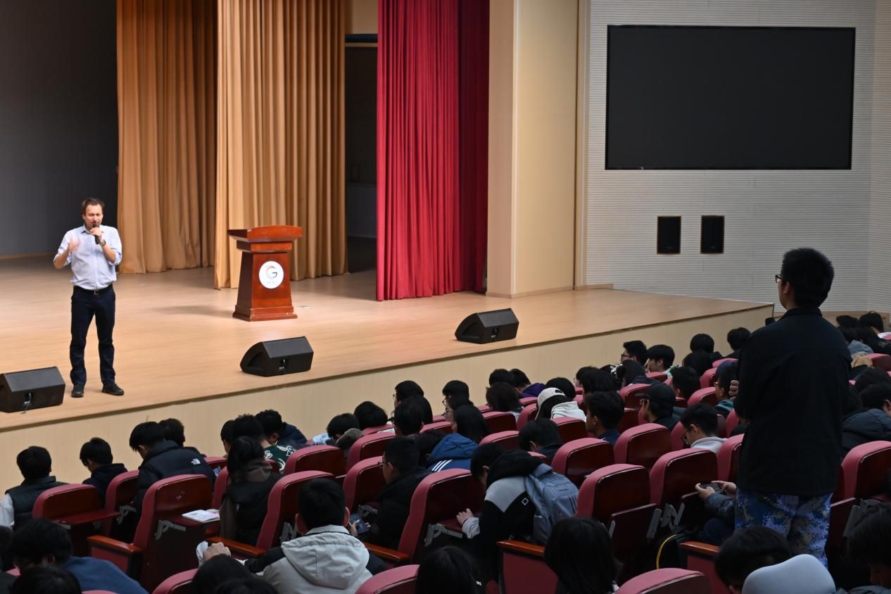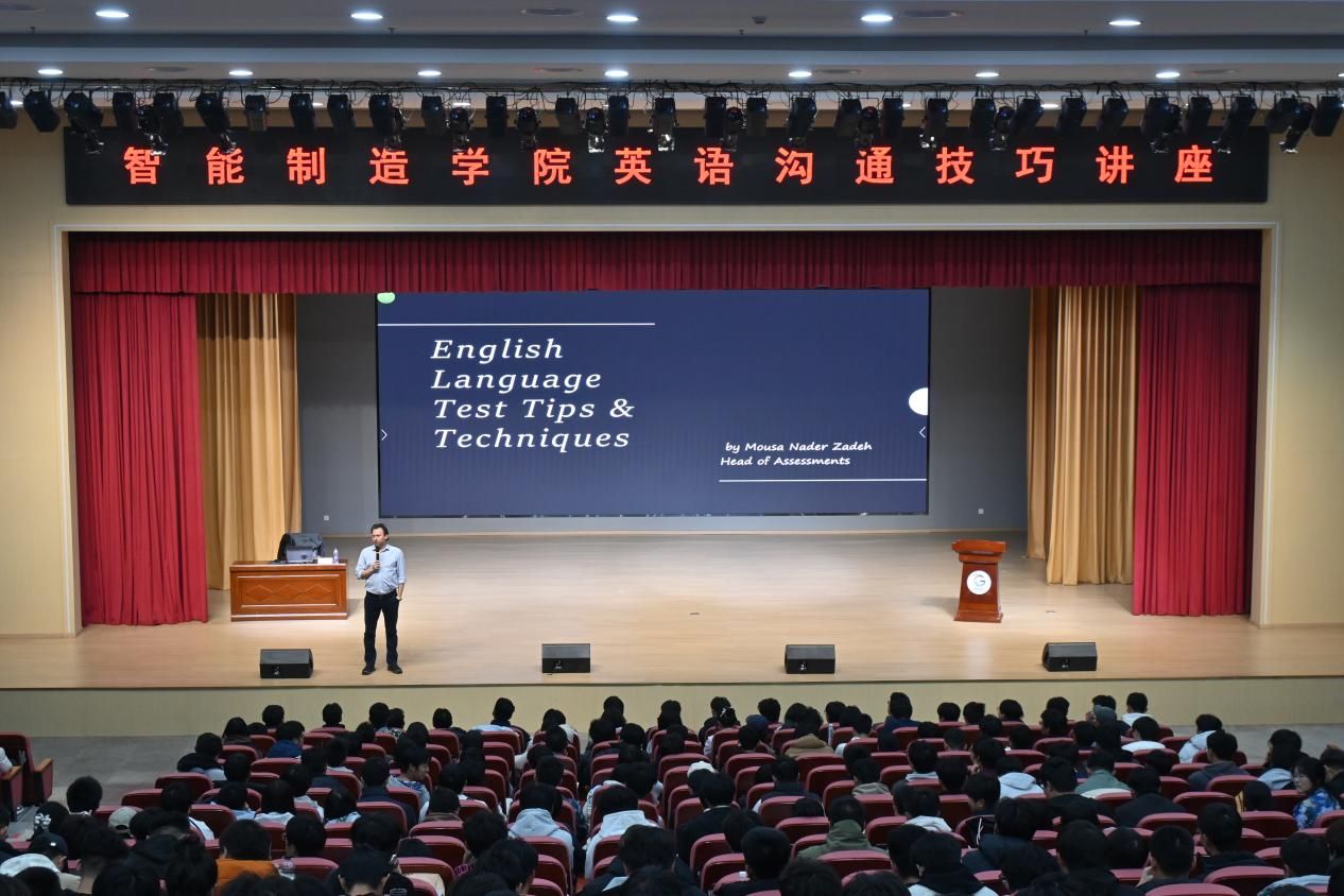 11月24日,2026年国际足联世界杯2026年国际足联世界杯在学术报告厅举办英语沟通技巧讲座。英国诺森比亚大学语言考试中心主任穆萨·纳德尔·扎德(Mousa Nader Zadeh)担任主讲人,张圣杰老师主持讲座,500余名公司师生共同参与。本次讲座旨在助力员工提升英语沟通能力、拓宽国际学术视野,为有志于英语学习的员工搭建学习交流的优质平台。